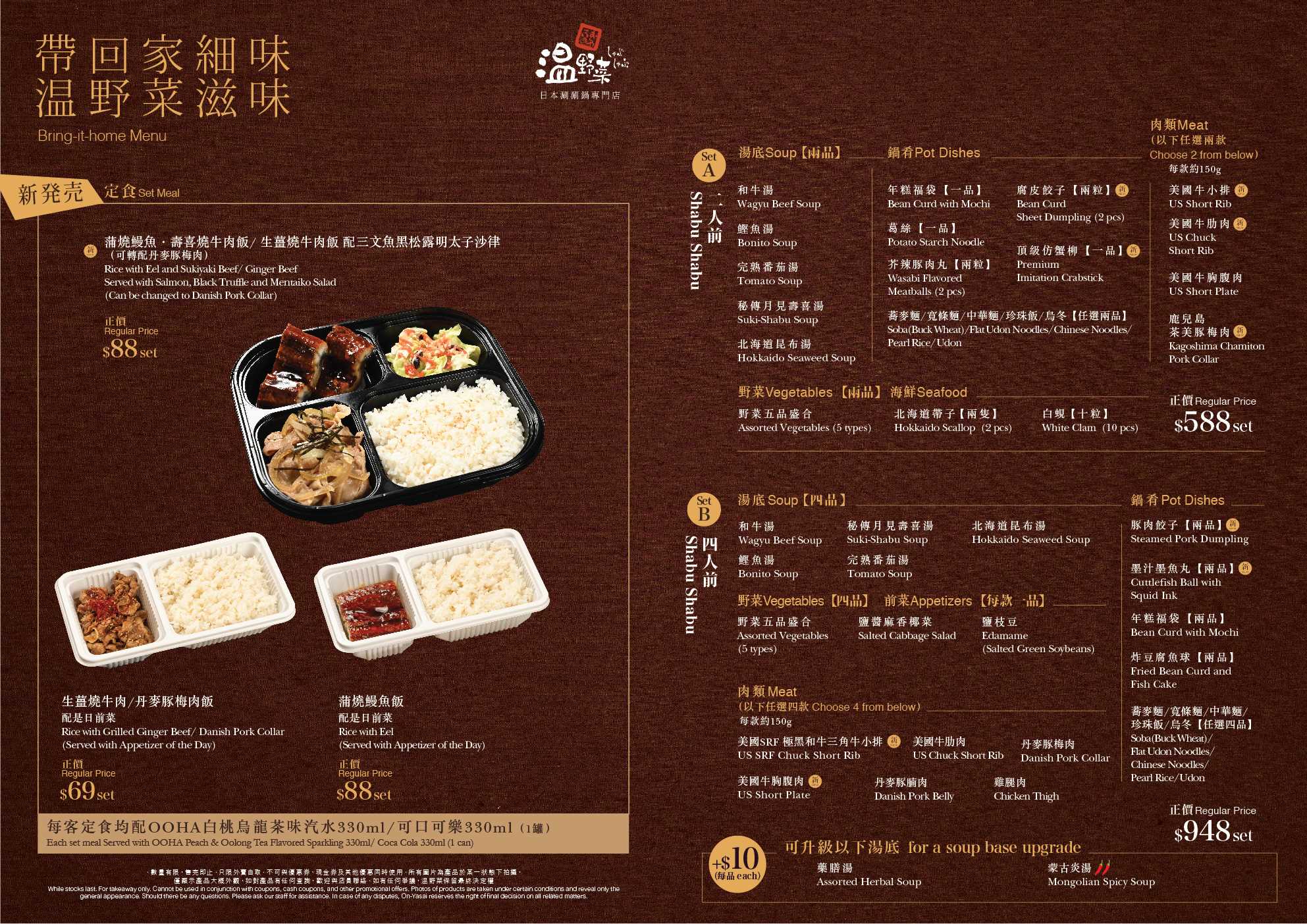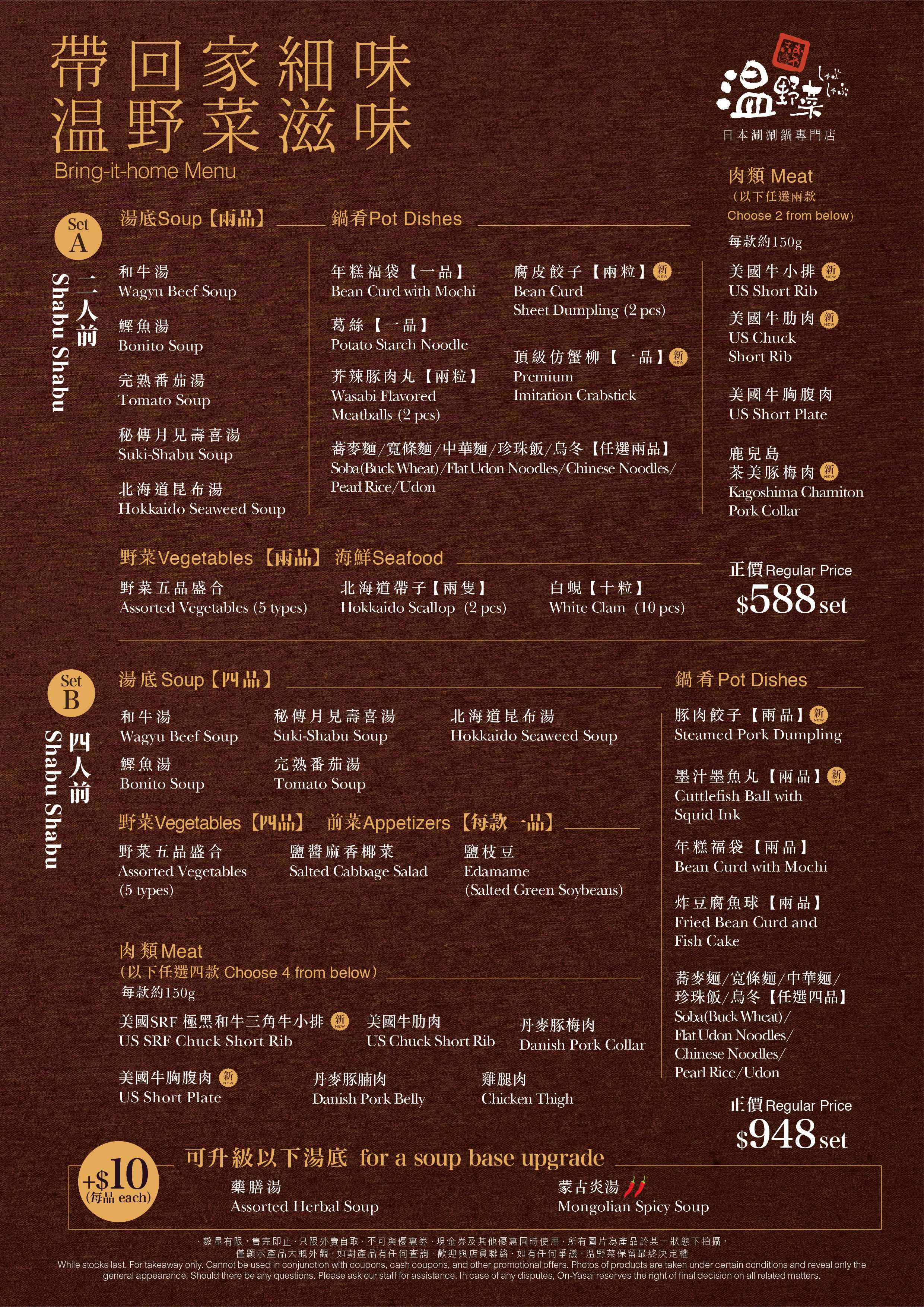 温野菜 (尖沙咀LCX、太古城、又一城店) 外賣宣傳單張:按此查閱