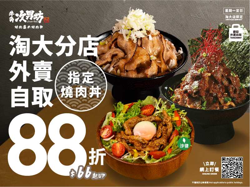 今日(5/9)起,牛角次男坊淘大店推出全新「外賣自取88折」優惠,包括牛角次男坊丼、 外賣自取88折餐目詳情:https://bit.ly/3cMO449